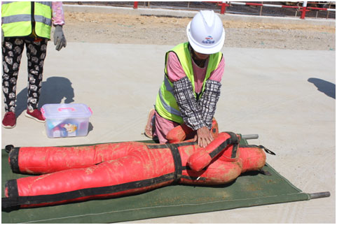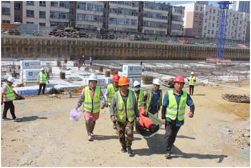 本次演練模擬為施工現(xiàn)場材料堆場出現(xiàn)火情和坍塌,施工人員發(fā)現(xiàn)后立即向項(xiàng)目經(jīng)理報告,項(xiàng)目經(jīng)理根據(jù)現(xiàn)場情況立即啟動應(yīng)急預(yù)案。項(xiàng)目部全員按照應(yīng)急預(yù)案進(jìn)行疏散逃生。醫(yī)療救護(hù)組、安保組、綜合協(xié)調(diào)組等迅速集結(jié),在做了緊急部署后,搶救傷員、滅火行動組同步行動,整個演練井然有序進(jìn)行。