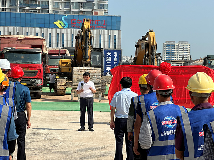 榮成市眼科醫(yī)院院長房建壯以及作為項(xiàng)目施工方負(fù)責(zé)人我司副總經(jīng)理倪積林作表態(tài)發(fā)言。榮成市副市長劉全良和市衛(wèi)健局黨委書記原濤宣布項(xiàng)目正式開工。